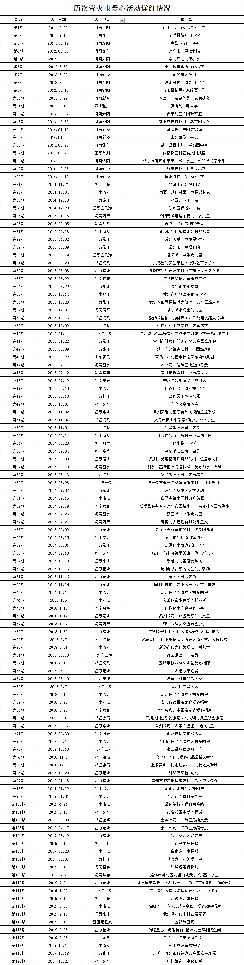 以下是歷次愛心活動明細(xì):